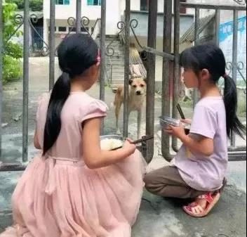 有時候還會將自己碗里的飯分給大黃。